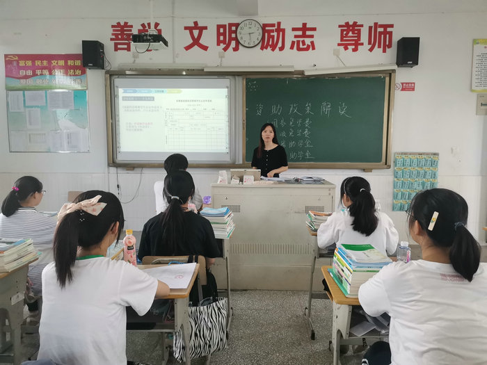 为确保资助政策宣讲不走样,提升宣讲效果,学校在新学期开学第一天就对全体班主任开展了中职资助政策专题培训,对如何精准认定家庭经济困难学生进行了重点解读,强调对原建档立卡贫困户家庭学生要保持政策延续。同时,学校还统一编制了图文并茂的《马鞍山市中职资助政策解读》PPT、《宣讲手册》等宣讲材料供各班级在宣讲时使用。各班级围绕主题开展了形式多样、各具特色的宣讲活动,准确、全面的解读了中职资助政策的内容及各资助项目的申请、发放流程。各宣讲教师在宣传资助政策的同时还对学生进行了诚信和感恩励志教育,教育同学们要诚实守信,受助思源,努力学习,回报社会。
