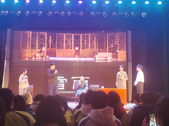 联欢会在动感十足的舞蹈串烧中拉开序幕。党委书记、校长叶昌芹发表了热情洋溢的新年致辞。舞蹈、相声、情景剧、器乐演奏、配乐朗诵,多才多艺的理工学子轮番上阵,为师生们带来了一场视觉与听觉的华美盛宴。课本剧《雷雨》首次被同学们搬上舞台,在深情演绎的过程中,同学们走进经典文学作品,感受祖国文字的深刻魅力。最后,由学校朗读者社团推送的配乐朗诵《新少年说》将现场热烈的气氛推向了高潮,展现了理工学子蓬勃的精神面貌。
