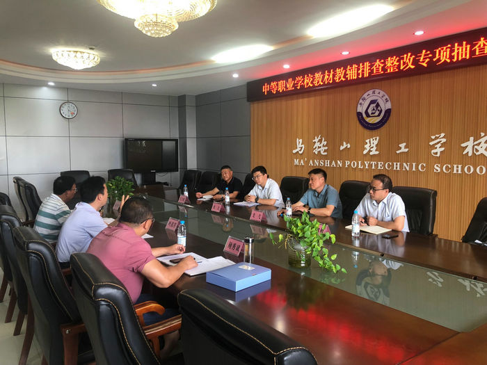 8月3日下午,安徽省教育厅教材教辅排查整改专项抽查工作组在市教育局职成教办主任黄加根的陪同下,到马鞍山理工学校检查工作。
