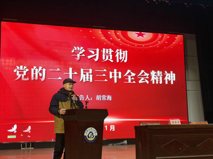 胡常海深入浅出地阐述了党的二十届三中全会精神的核心要义、精神实质和实践要求,明确了拥护“两个确立”、做到“两个维护”、增强“四个意识”、坚定“四个自信”的重大意义;殷切希望大家一定要加强交流互鉴,取长补短,埋头苦干,砥砺奋进,共同成长,努力提升自身业务能力和业务水平,凝心聚力推动学校高质量发展。