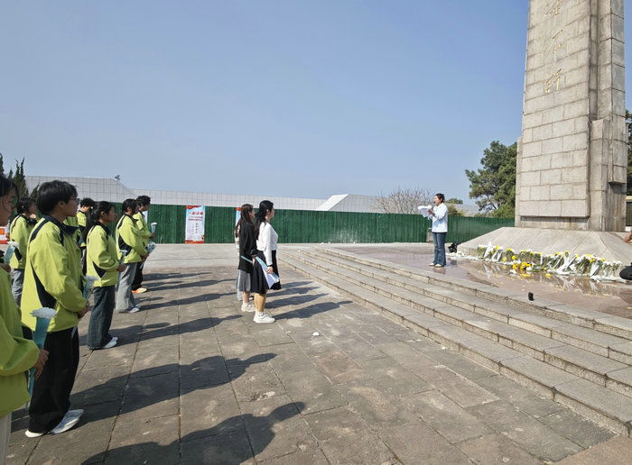 在庄严的烈士纪念碑前,党员教师代表和团员学生代表向革命烈士三鞠躬,默哀一分钟。团员学生们面对中国共产主义青年团团旗,高举右手,紧握右拳,在柯云涛同学的领誓下郑重宣誓。 最后,全体师生近前瞻仰了纪念碑,前往烈士墓前进行祭扫,并向革命烈士敬献鲜花。