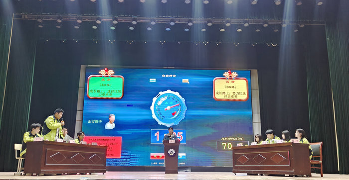 4月29日,马鞍山理工学校第五届校园辩论赛决赛在信息楼报告厅举行。2023旅游2班和2024机电1班代表队就“成长路上,选择和努力哪个更重要”展开辩论,经过多轮唇枪舌战,最终2024机电1班代表队夺得冠军。