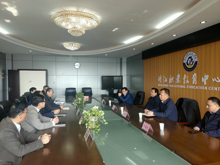 2月9日,马鞍山市人民政府市长袁方、政府秘书长易茂林一行来到皖江职教中心学校,看望慰问汽修专业部部长孙五一老师,并就推进中高职一体化办学、加强高层次人才培养引进开展座谈交流。