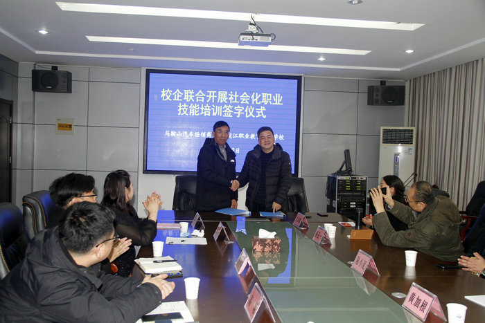 与会集团重点成员单位负责人也就自身企业的发展以及对职业教育育人的要求畅谈了看法和建议。会上,皖江职业教育中心学校还与马鞍山市汽车经销商商会签订了合作培训协议。