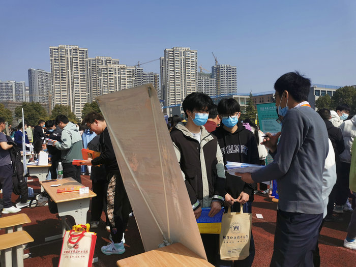 会议结束后,参会的考生在校体育场,与高职院校的招生工作人员进行了面对面的交流,对各个院校的有关情况进行了咨询和了解。
