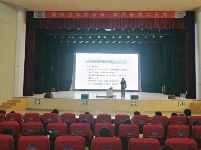 活动现场,市十七冶医院医生刘晓静就心肺复苏术等知识进行了详细讲述。她用生动的语言,通俗易懂地讲解了专业急救知识,并利用模拟人进行了心肺复苏操作技术演示。现场气氛活跃,部分师生还亲自体验了心肺复苏急救操作。
