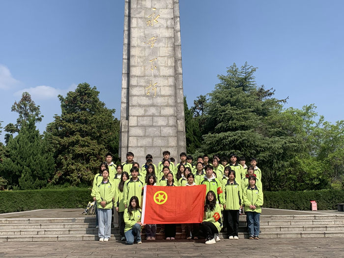 在庄严的烈士纪念碑前,党员、团员、青年教师向革命烈士三鞠躬,默哀一分钟。党员教师、团员青年们面对党旗、团旗,高举右手,紧握右拳,郑重宣誓。