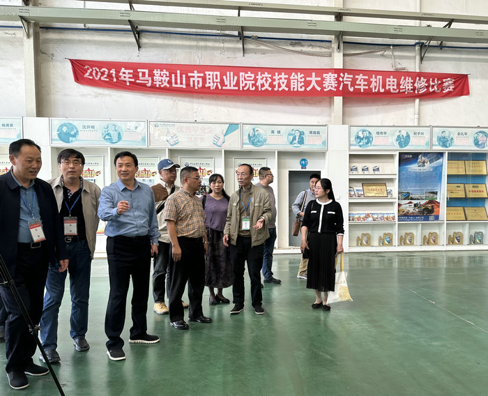 党委书记、校长叶昌芹对花丽亚一行表示热烈欢迎,并陪同来宾参观了学校汽车实训工厂。在座谈会上,叶昌芹介绍了学校招生就业、校企合作和中高职一体化办学等情况。叶昌芹表示,当前学校落实教育部加快推进现代职业教育体系建设改革重点任务,积极申报行业产教融合共同体、开放性区域产教融合实践中心等多个项目,并获得教育厅批准。同时,学校充分发挥师资、设备及区位优势,紧跟我市新能源汽车产业快速发展趋势,与马鞍山比亚迪公司、安徽辰夫智控科技有限公司合作建立新能源汽车产业学院,为提高产业竞争力和汇聚发展新动能提供人才支持和智力支撑。