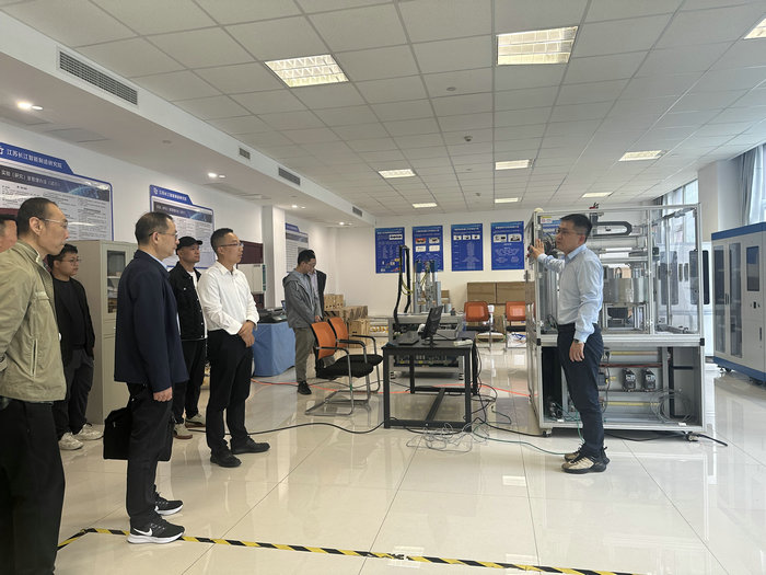 在中国机械总院北自所常州基地,梁懈一行参观了国家职能化系统集成应用体验验证中心。据了解,该基地拥有9个研究开发事业部、4个控股公司制造业自动化国家工程研究中心等5个国家级研发机构。北自所负责同志表示,愿意支持学校相关专业教学视频和教学案例分享渠道。安徽辰夫智控科技有限公司也表示,将与学校就“共同开展招生、共同制定培养方案、共同制定课程标准和开发课程资源、共同建设师资队伍、共同建设实训基地、共同组织教育教学、共同评价教学效果、共同促进学生就业创业”等方面开展深入合作。
