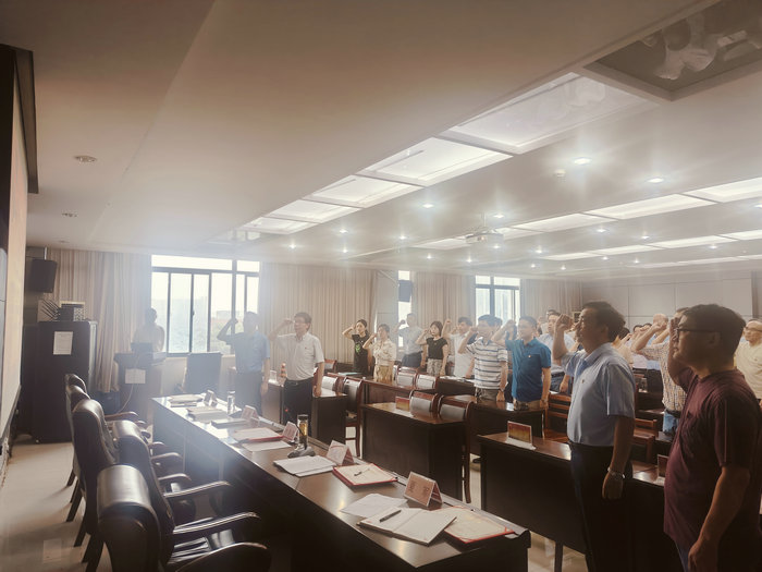 大会在雄壮的国歌声中拉开序幕。党委副书记、纪委书记、工会主席邰本华同志带领全体党员面对鲜艳的党旗庄严宣誓,重温入党誓词。