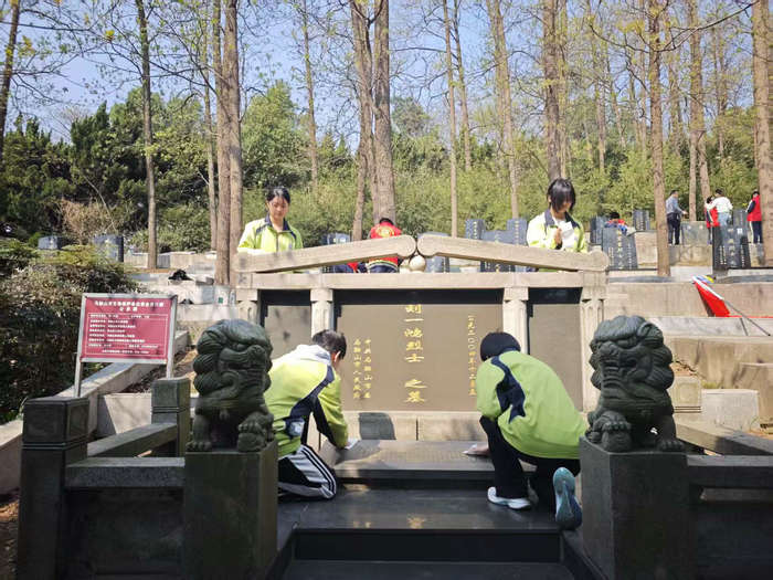 在庄严的烈士纪念碑前,党员教师代表和团员学生代表向革命烈士三鞠躬,默哀一分钟。团员学生们面对中国共产主义青年团团旗,高举右手,紧握右拳,在柯云涛同学的领誓下郑重宣誓。 最后,全体师生近前瞻仰了纪念碑,前往烈士墓前进行祭扫,并向革命烈士敬献鲜花。
