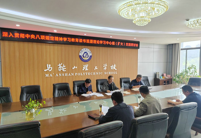 为深入贯彻落实中央八项规定精神,进一步加强作风建设,4月8日,马鞍山理工学校党委举行深入贯彻中央八项规定精神学习教育读书班暨理论学习中心组(扩大)交流研讨会。党委副书记、校长梁懈主持会议并讲话。党委班子成员及部分科室负责人参加会议。