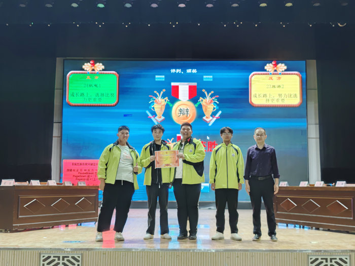 4月29日,马鞍山理工学校第五届校园辩论赛决赛在信息楼报告厅举行。2023旅游2班和2024机电1班代表队就“成长路上,选择和努力哪个更重要”展开辩论,经过多轮唇枪舌战,最终2024机电1班代表队夺得冠军。