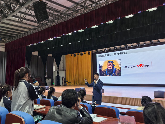 课堂教学展示环节中,怀远职业技术学校盛顺顺老师以中职语文统编教材基础模块《师说》为题执教示范课。盛老师以“老师对人生的深远影响”为引,自然切入“师道”核心议题。课堂设计环环相扣、层层递进,既精准梳理了古代议论文“说”的文体特征,将晦涩文本转化为中职学生易于理解的知识体系;又巧妙搭建古今对话桥梁,由《师说》的传统师道思想,延伸至《中共中央、国务院关于弘扬教育家精神,加强新时代高素质专业化教师队伍建设的意见》的政策要求,在深化“尊师重教”认知的同时,实现时政元素的无痕渗透。课程尾声,盛老师引导学生结合自身专业岗位实际反思践行,让传统文化与职业教育精准对接,以行云流水的教学节奏、贴合学情的巧妙设计,达成“以知识促专业、以文化润人心”的教学目标,充分契合中职学生的认知特点与成长需求。