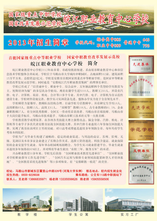 安徽省优秀中等职业学校(A类)    国家中等职业教育改革发展示范学校