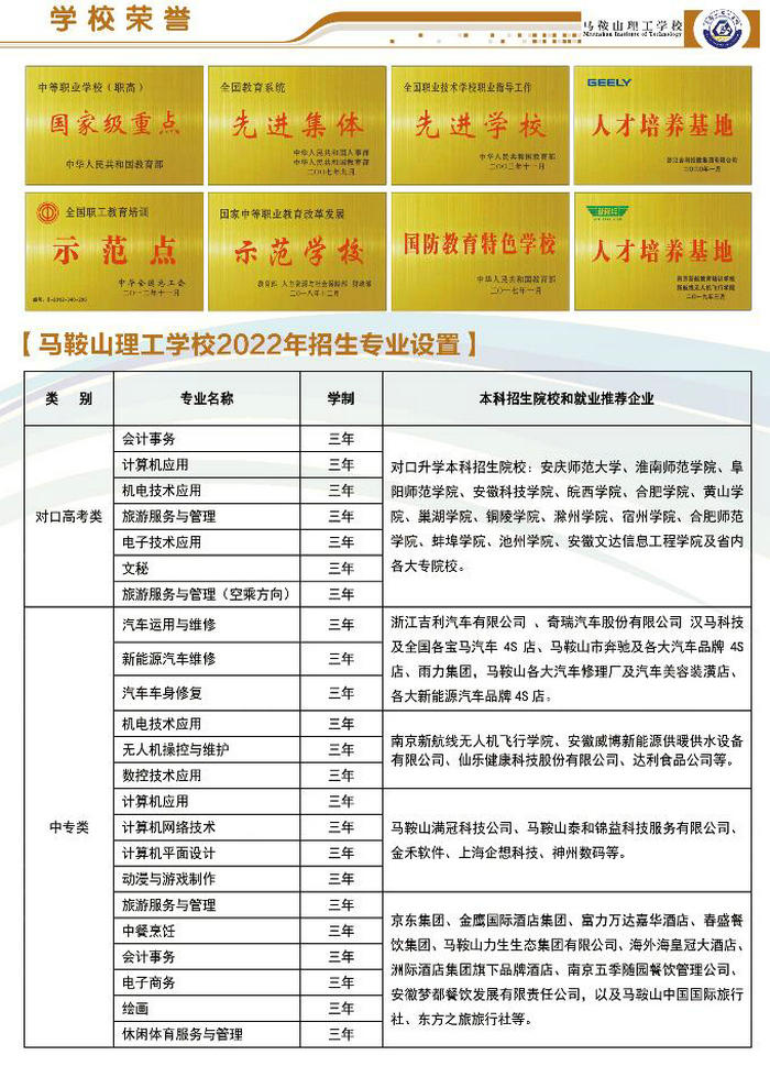 安徽省优秀中等职业学校(A类) 国家中等职业教育改革发展示范学校