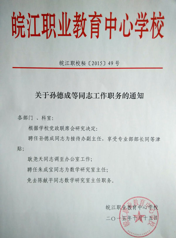 安徽省优秀中等职业学校(A类) 国家中等职业教育改革发展示范学校