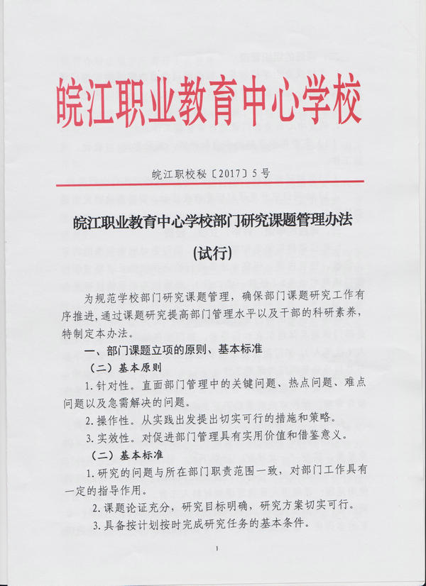 皖江职业教育中心学校部门研究课题管理办法(试行)