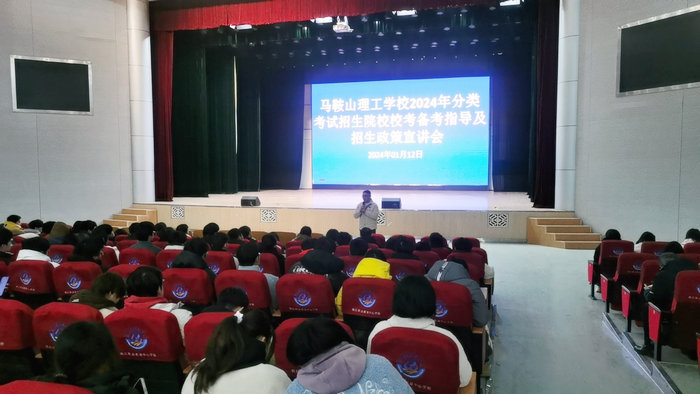 分类招生考试是安徽省高等职业教育招生的重要形式,为帮助学生更好地备考,全面了解2024年安徽省招生政策,1月12日,马鞍山理工学校学校举行2024年分类考试招生院校校考备考指导及招生政策宣讲会。马鞍山职业技术学院等6所办学质量好、学生认可度高的高职院校应邀参加宣讲活动,面对面为考生进行考前备考指导、招生政策、报考流程解读,该校300余名毕业班学生现场聆听。