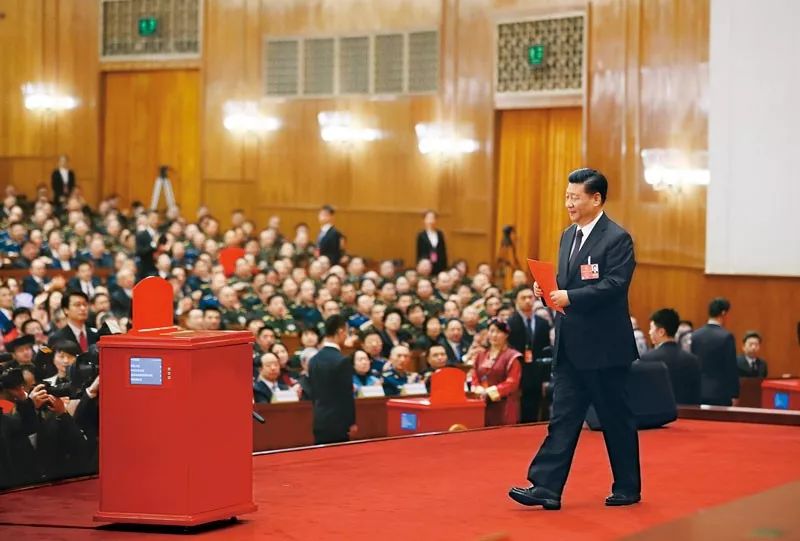 2018年3月17日,十三届全国人大一次会议在北京人民大会堂举行第五次全体会议。习近平当选中华人民共和国主席、中华人民共和国中央军事委员会主席。这是习近平准备投票。新华社记者 兰红光/摄 一个政党,一个政权,其前途命运取决于人心向背。人民群众反对什么、痛恨什么,我们就要坚决防范和打击。人民群众最痛恨腐败现象,我们就必须坚定不移反对腐败。要坚持用制度管权管事管人,抓紧形成不想腐、不能腐、不敢腐的有效机制,让人民监督权力,让权力在阳光下运行,把权力关进制度的笼子里。要坚持“老虎”、“苍蝇”一起打,坚持有腐必反、有贪必肃,下最大气力解决腐败问题,努力营造风清气正的党风政风和社会风气,不断以反腐倡廉的新成效取信于民。