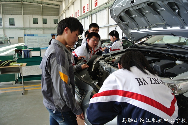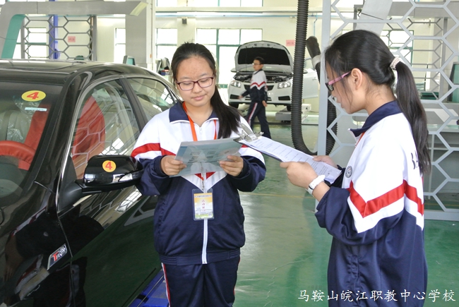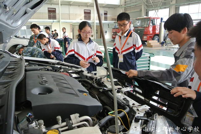 听取完报告后,同学们分为两组参观了校园,重点参观了汽修和机电的实训基地。当得知这是他们下午上课的教室后,同学们都异常期待。