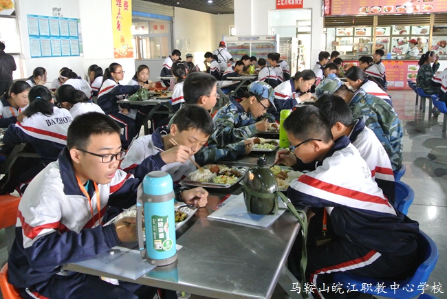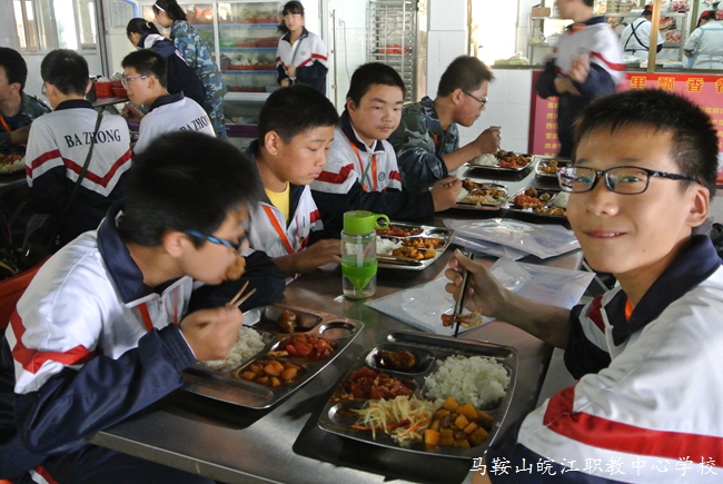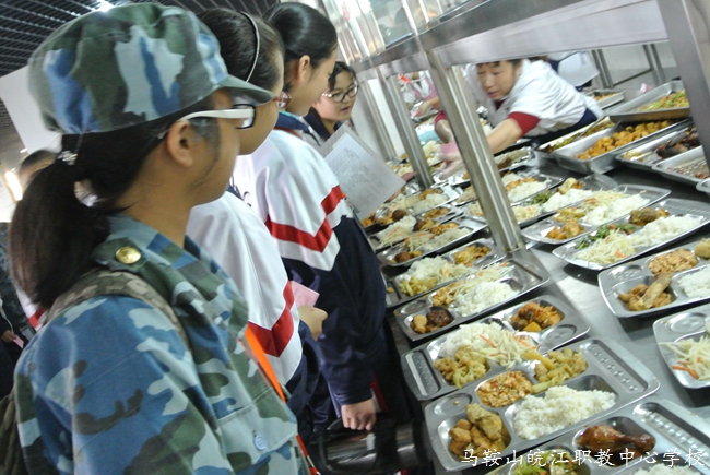 简短的参观后,同学们整队来到食堂,看到皖江职教中心学校的师傅们居然为了他们准备了鸡腿,同学们开心极了。