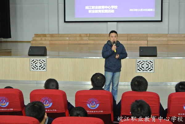上午8点30分,大巴车缓缓驶入皖江职教中心学校。经过短暂的参观休整,同学们熟悉了学校的环境,有序的进入报告厅,听取胡浩老师关于职业生涯规划的报告。