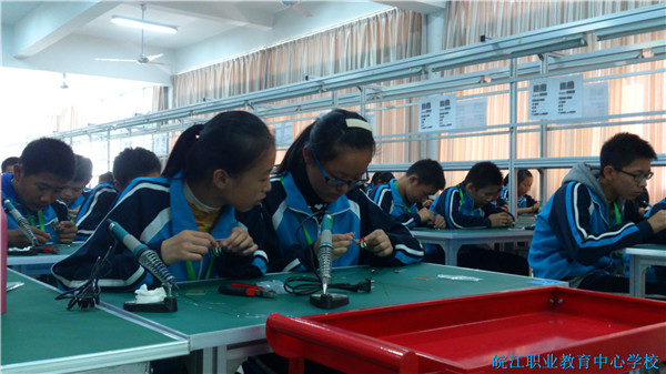 学校的重点骨干专业—电工电子专业针对初二学生职业教育实践活动,开发了适合初中学生体验的技能活动项目,设计了电子产品小制作活动项目。