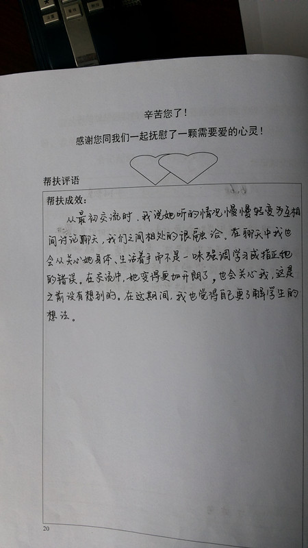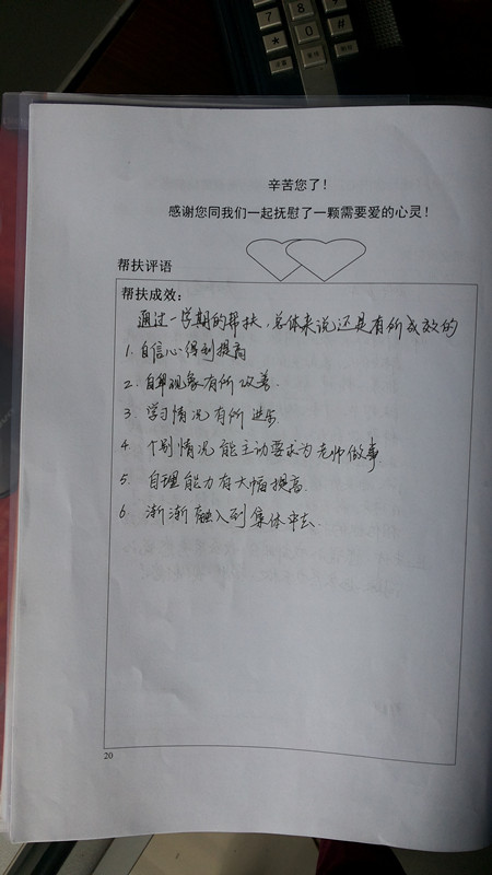 为了让伟大的母爱能充满校园的每一个角落,让每一个感到孤寂、失去人生奋斗方向的孩子重拾信心。我校在本学期开学季开展了“母爱在校园”心灵妈妈帮扶试点活动。历时四个月的活动交流,让结对的师生都感受颇多。有的老师感到与学生拉近了心灵的距离、有的老师真正走入了学生的业余生活圈、有的老师能设身处地为学生“量身定做”学习方法……,这些细致入微的爱让“师生情”真正意义上升华为了“母子情”。活动组织部门从学生记载的手册中也读出了活动中流露出得真切而暖心的感受。
