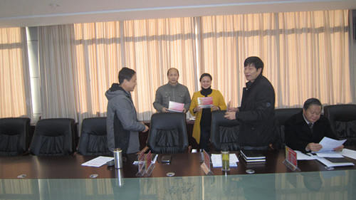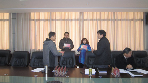 11月29日,皖江职校举行廉政桌牌发放仪式。党委书记许宗斌、校长滕培定为每个职能处室颁发廉政桌牌。