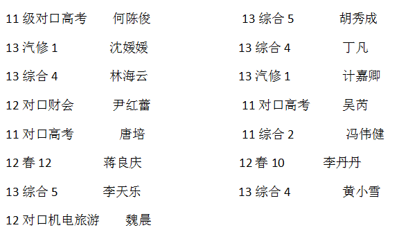 2013年12月2日中午,皖江职业教育中心学校第三期团校结业考试图书楼501进行。近200名团校学员参加了本次考试。在考试过程中,同学们都能够做到仔细审题、认真答题,考场秩序井然。经过对本期团校学员的综合评价考核,现将荣获“优秀团校学员”名单通报如下:
