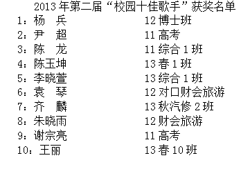 经过激烈比赛,十位选手脱颖而出,成为了皖江职业教育中心学校第二届 “校园十佳歌手”。9号选手杨兵以一曲《兄弟抱一下》打动 在场所有的评委和同学,获得本次大赛的冠军。随着第二届校园十佳歌手决赛的结束,皖江职业教育中心学校第九届校园文体科技节也圆满落下了帷幕。