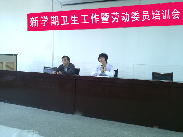 会上,何主任就劳动卫生委员的岗位职责和工作方法和工作内容等方面问题对与会学生进行了培训,何主任用两个“伟大”概括了劳动委员的意义,即“劳动是伟大的”,劳动创造了幸福;“劳动委员是‘伟大’的”,劳动委员承担了别人不愿意做的累活,劳动委员所做的工作是非常有意义的。校医对全校各班级晨检、传染病防治和卫生检查等具体工作做了安排指导。